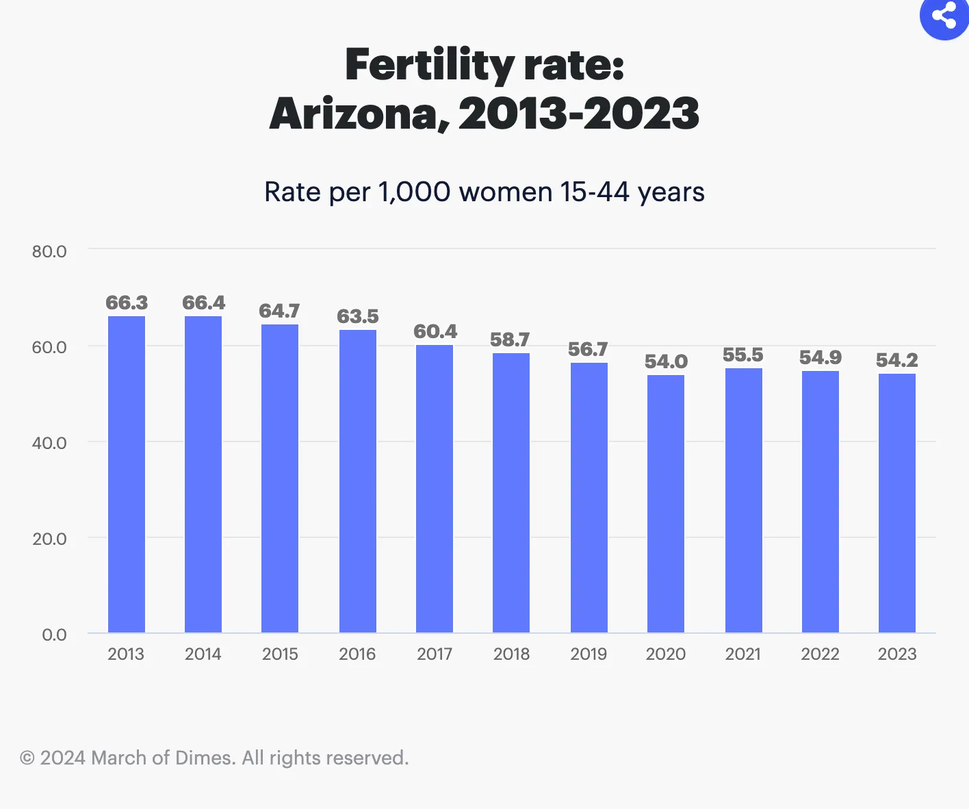 Arizona’s birth rate peaked in 2007. That was 18 years ago. Those kids are graduating high school this year, and every class that comes after them will be smaller than the last.